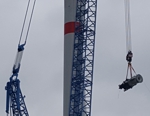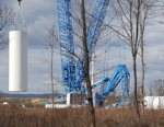 Der weitere Aufbau der beiden WEA erfolgt im Laufe der kommenden Woche mit Hilfe eines speziellen Krans: Pro WEA werden drei weitere Turmsegmente, das komplette Maschinenhaus, die Nabe und die Rotorblätter gehoben und zusammengebaut.