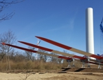 Am Vormittag wurden die drei Rotorblätter unmittelbar beim Standort der neuen WEA abgeladen. Sie werden kurzfristig beim Montageplatz gelagert bis die Bauarbeiten in den kommenden Wochen soweit fortgeschritten sind, um die Rotorblätter zu heben und an die Nabe zu montieren.