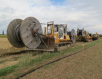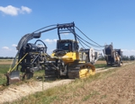 Die Erdkabel zwischen den WEAs und der Zählerstation und von dieser bis zur Stromabnahmestelle werden so weit wie möglich eingepflügt, nur in einem sehr kurzen Abschnitt werden Künetten ausgehoben und die Kabel darin verlegt. Die Arbeiten mittels Kabelpflug nehmen nur einen Tag in Anspruch, in den kommenden Tagen folgen Kabelverlegungsarbeiten innerhalb der Turmfüße und die Instandsetzung der Kabeltrasse.