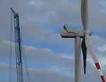 Unmittelbar nach Fertigstellung der Zählerstation wird die WEA02 des WP Scharndorf West in Betrieb genommen und damit die Stromproduktion begonnen. Zeitgleich mit der Zuschaltung dieser WEA an das 20 kV-Netz kann an der anderen WEA mit dem Heben der 3 Rotorblätter begonnen werden und bereits einige Stunden später sind die Hübe und damit die Außenmontage der WEA01 abgeschlossen.