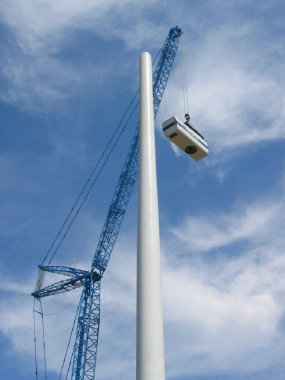 WEA 2: Gondel auf ca. 80 Meter Hubhöhe.