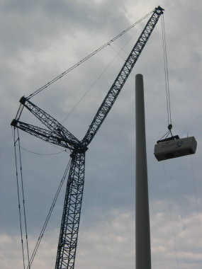 WEA 6: Die 65 Tonnen schwere Gondel auf ihrem Weg nach oben.