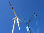 Nach der erfolgreichen Fertigstellung aller Fundamente, der internen Windpark-Verkabelung, der Zuwegung sowie der Montageplätze konnte heute die erste der 9 Vestas V80 Anlagen errichtet werden. Bis Ende Oktober sollte der Windpark stehen.