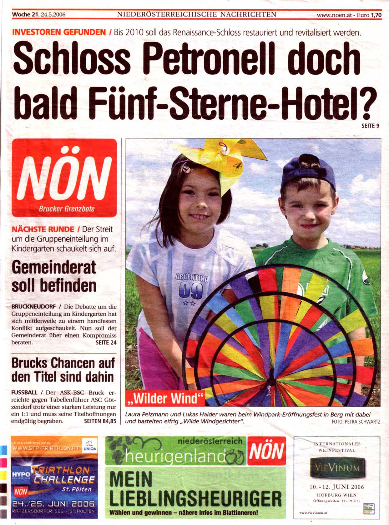 Heute erlangte der nach umfangreichen ornithologischen Untersuchungen im Dezember positiv ausgestellte Naturschutzbescheid Rechtsgültigkeit. Somit ist die Errichtung des Windparks für Sommer 2005 geplant.