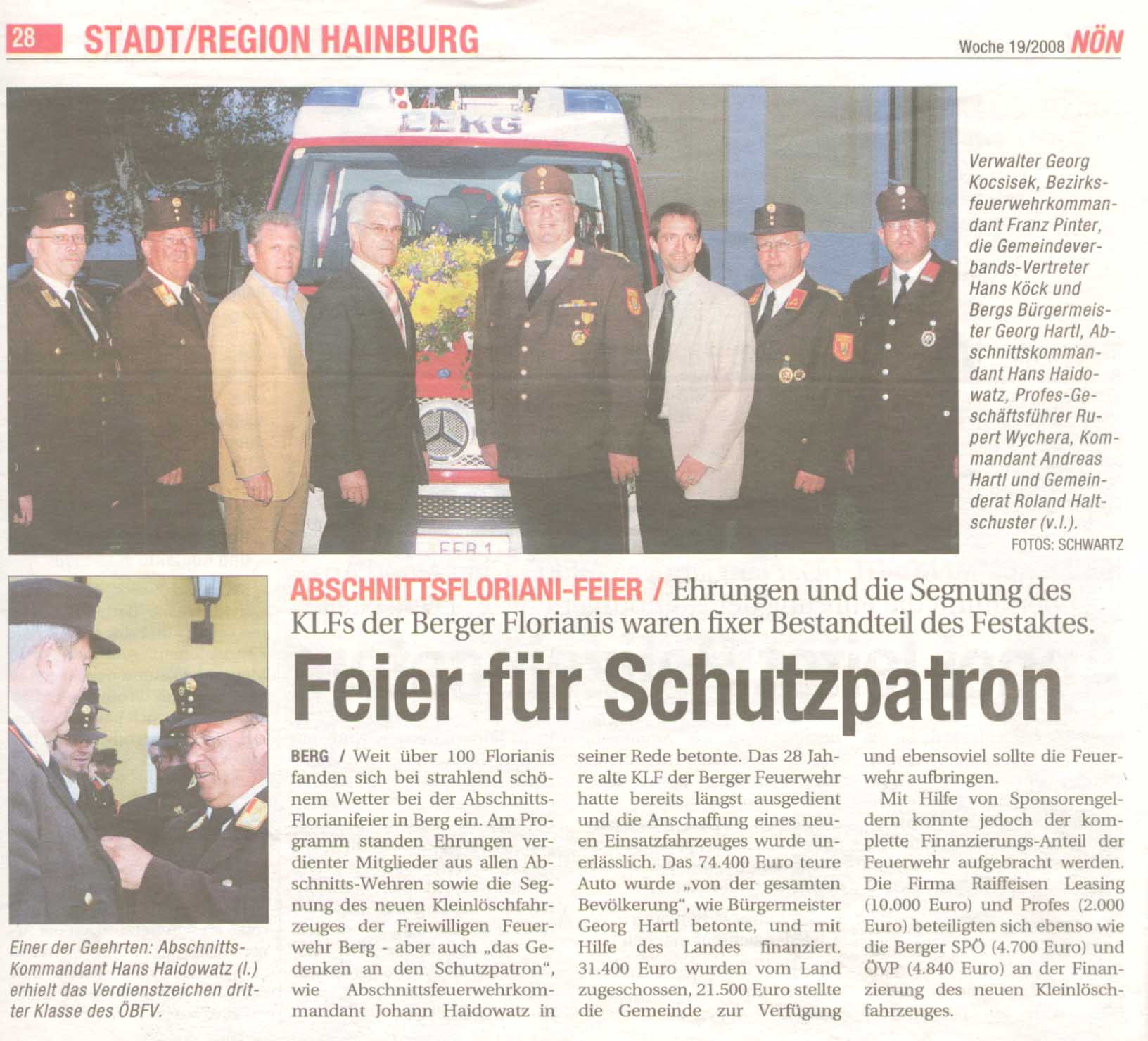 Den Freiwilligen Feuerwehren von Berg und Stixneusiedl wurde im Rahmen einer feierlichen Einsegnung bei der Florianifeier bzw. 120-Jahr-Feier je ein neues Einsatzfahrzeug übergeben. PROFES freut sich, als Sponsor einen Teil zur Finanzierung beitragen zu können und wünscht den Florianijüngern ein unfallfreies Wirken bei ihren Einsätzen.