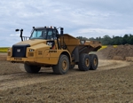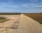 Bereits eine Woche nach dem Baubeginn am 08.08.2022 war die Erdkabelverlegung für das neue Windrad abgeschlossen - es waren allerdings auch nur ca. 600 m einzupflügen... Auch beim Erdbau gibt es schon deutliche Fortschritte: Der Humusabtrag ist abgeschlossen, der Stichweg schon großteils ausgebaut.