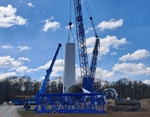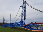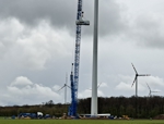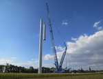 Der weitere Aufbau der beiden WEA erfolgt im Laufe der kommenden Woche mit Hilfe eines speziellen Krans: Pro WEA werden drei weitere Turmsegmente, das komplette Maschinenhaus, die Nabe und die Rotorblätter gehoben und zusammengebaut.