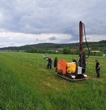 Heute erfolgte mit dem Rammen der ersten Profile der Unterkonstruktion der Baubeginn der beiden 492,48-kWp-Photovoltaik-Anlagen Grafenschlag im Waldviertel für unsere Auftraggeber. Für PROFES sind es die ersten Freiflächenanlagen, die wir dort auf einem Betriebsbauland umsetzen. Die beiden Anlagen werden Sonnenstrom für je 125 Haushalte liefern und unserer Atmosphäre jeweils 250 Tonnen CO2 pro Jahr ersparen. Zwischen und unter den Modulen wird eine artenreichen Blumenwiese angelegt. Die Anlagen sollen nach ihrer Inbetriebnahme, die im Laufe der nächsten Wochen erfolgen soll, für 30 Jahre und mehr nachhaltigen Ökostrom erzeugen.