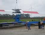 Unmittelbar nach Fertigstellung der Zählerstation wird die WEA02 des WP Scharndorf West in Betrieb genommen und damit die Stromproduktion begonnen. Zeitgleich mit der Zuschaltung dieser WEA an das 20 kV-Netz kann an der anderen WEA mit dem Heben der 3 Rotorblätter begonnen werden und bereits einige Stunden später sind die Hübe und damit die Außenmontage der WEA01 abgeschlossen.