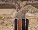 In den vergangenen zwei Wochen wurde der Bodenaustausch zur Schaffung eines tragfähigen Untergrundes für die WEA-Betonfundamente vorgenommen. Derzeit wird die Leerverrohrung für die spätere Windparkverkabelung in den Baugruben der künftigen WEA-Standorte eingebaut und im Laufe der Woche werden die Sauberkeitsschichten für beide WEA betoniert. Genereller Arbeitsschwerpunkt im Juli ist der Fundamentbau!