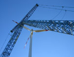 Nach der erfolgreichen Fertigstellung aller Fundamente, der internen Windpark-Verkabelung, der Zuwegung sowie der Montageplätze konnte heute die erste der 9 Vestas V80 Anlagen errichtet werden. Bis Ende Oktober sollte der Windpark stehen.